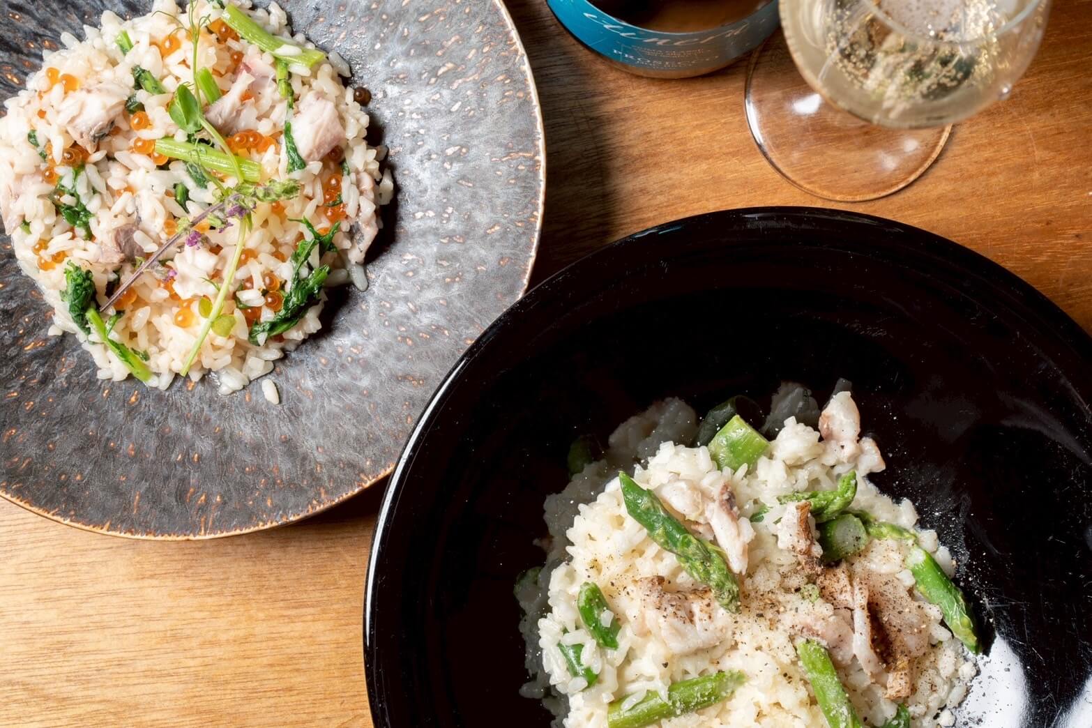【炙り桜鯛とグリーンアスパラガスのクリームリゾット】