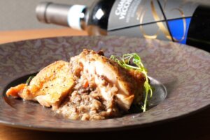【但馬鶏のソテー〜マッシュルームの柚子胡椒デュクセルソース】