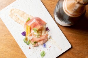 【ホワイトアスパラガスのグリルと生ハム~桜香るブールブランソース】